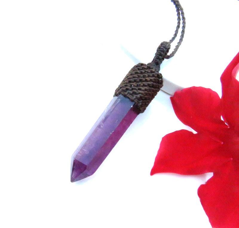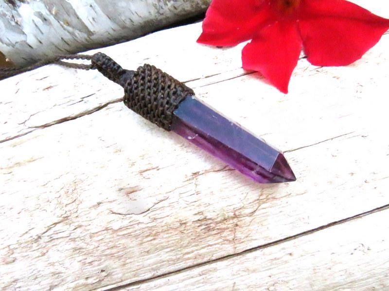 This listing is for a stunning Purple Fluorite macrame necklace - this magnificent Fluorite crystal point necklace is a beautiful deep purple 💜 The color is exceptional! In Latin, 'fluorite' means 'to flow' - reminding us to 'flow with it all.' You will receive the exact crystal in photos #1-7 and the video.