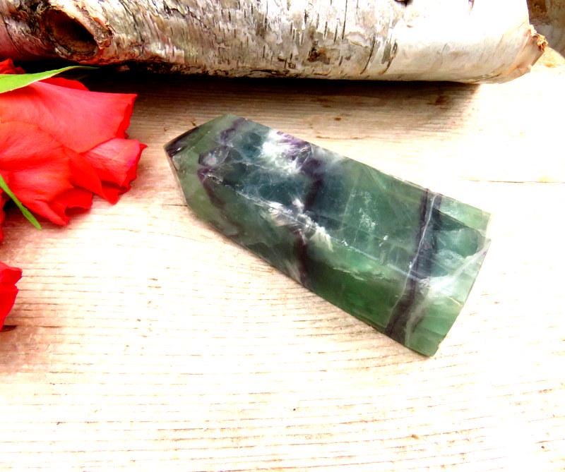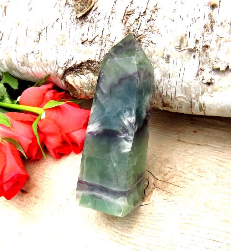 Gorgeous Snowflake Fluorite crystal tower - So much prettier in person ! This beautiful Fluorite tower is a lovely green , aqua blue and purple with unique 'snowflake' patterns throughout 💚💜 A beautiful addition to your space 💜💚