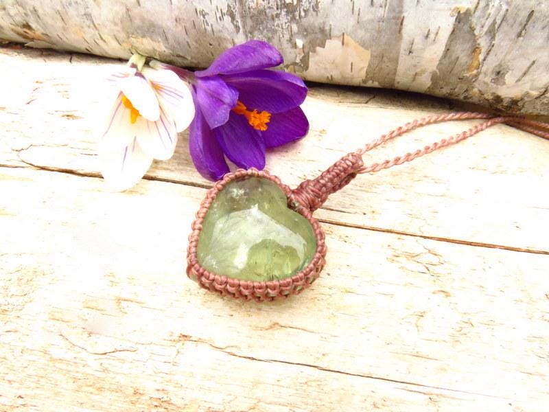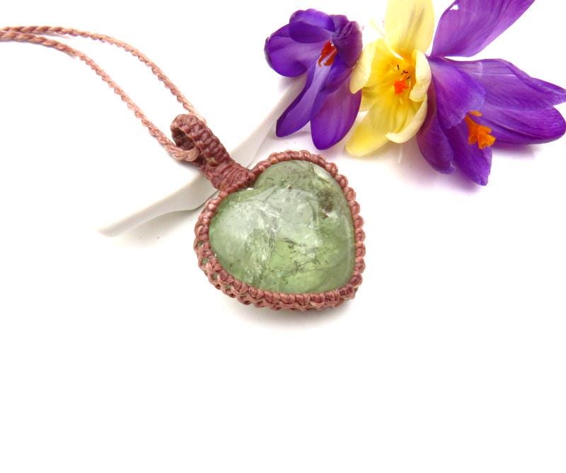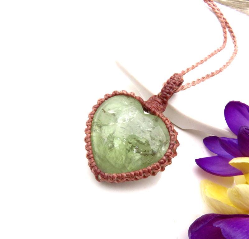 COMPASSION * PEACE OF MIND * CONNECTION ๐ Beautiful Prasolite crystal necklace - this heart shaped Prasolite is from Brazil. Prasiolite is a variety of green Quartz that is mainly found in the Minas Gerais region of Brazil. The color is a gorgeous, soft green with a magical world inside ! Although this gem can be formed naturally, it is commonly replicated by heating or irradiating regular Amethyst (Quartz). Natural Prasiolite displays a soft, sage green hue, whereas treated Prasiolite showcases a deeper, vibrant green colour.