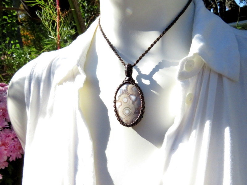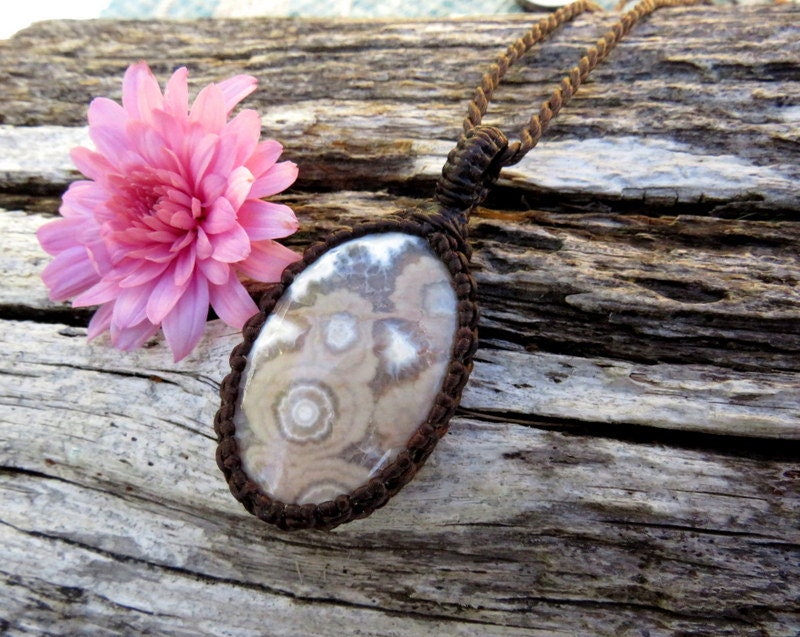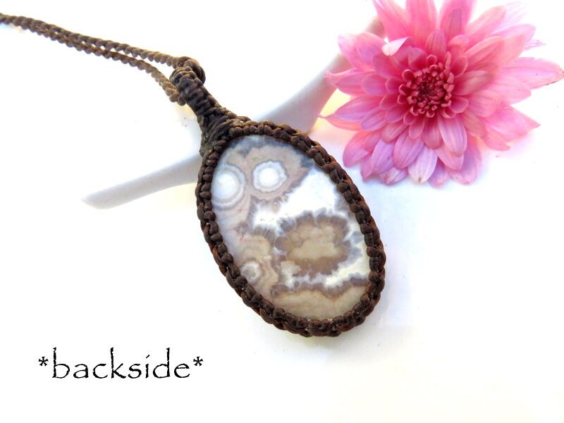 == The macramé design covers the perimeter of each stone - leaving the back open so that the stone touches the skin.