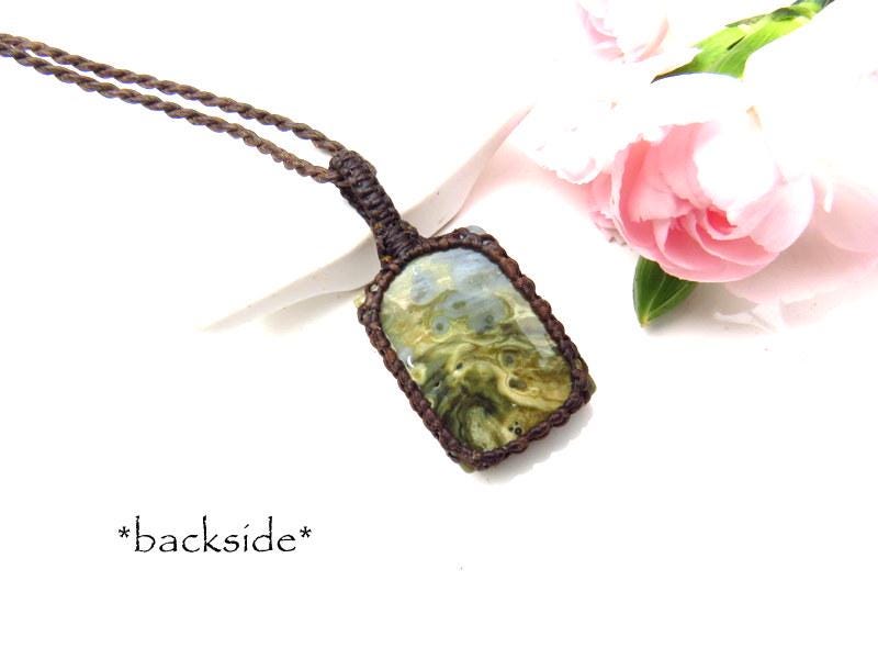 == The macramé design covers the perimeter of each stone - leaving the back open so that the stone touches, or is close to, the skin.