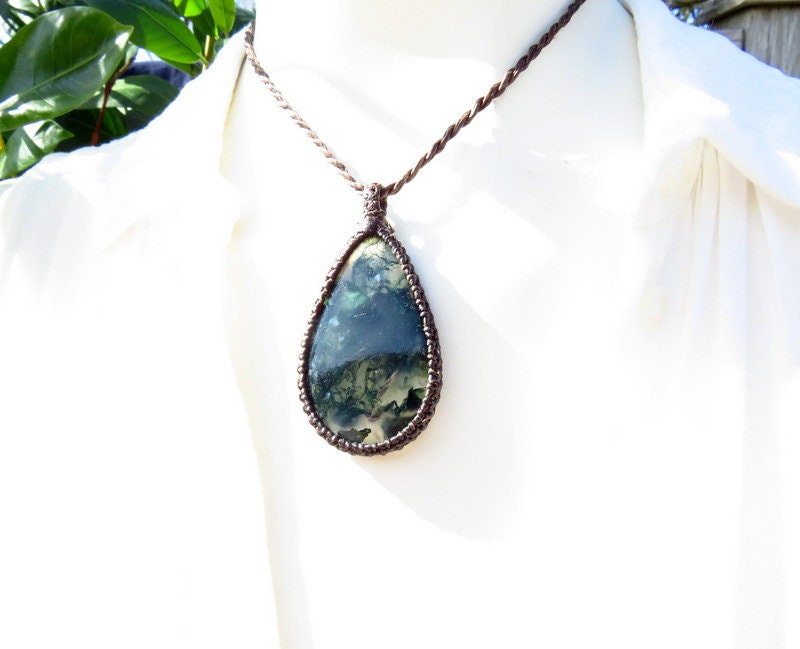 Moss Agate macrame necklace, macrame jewelry