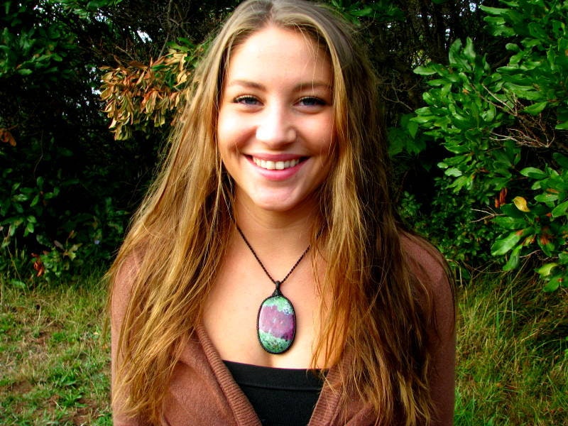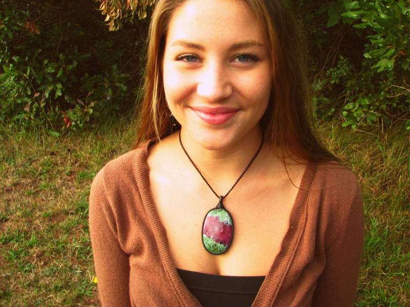 Materials: cabochon, waxed cord, gems, semiprecous stones, ruby, ruby zoisite.