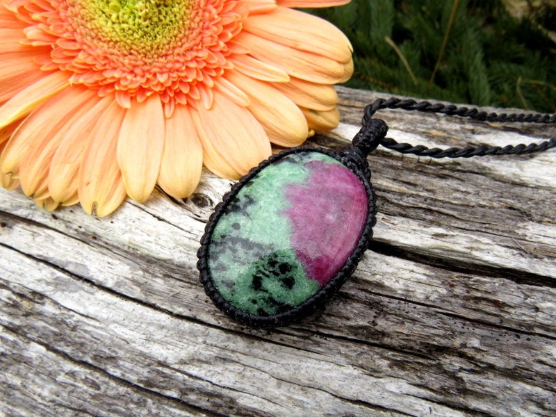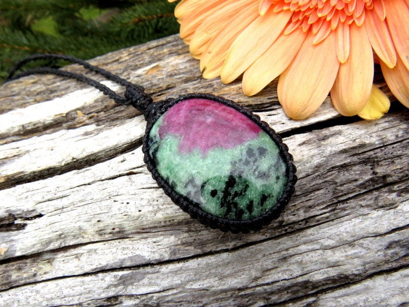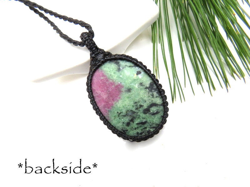 🌹VITALITY & PASSION - GRIEF WORK AND ACCEPTANCE🌹Very pretty Ruby Zoisite gemstone macrame necklace - lovely, deep fuchsia ruby in green Zoisite - a beautiful find ! *Minor, natural imperfections - You will receive the exact stone in photos #1 - 6