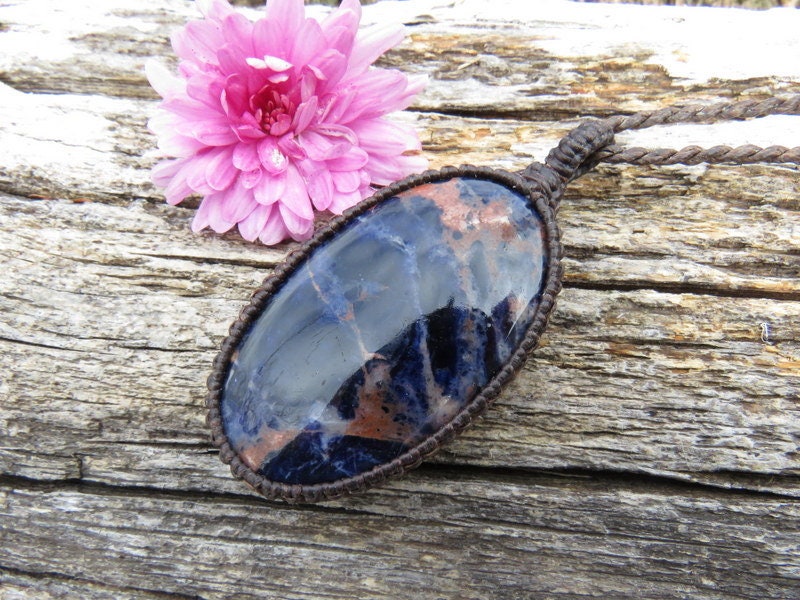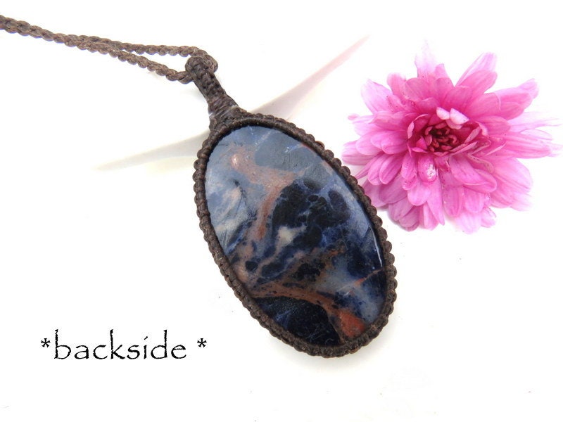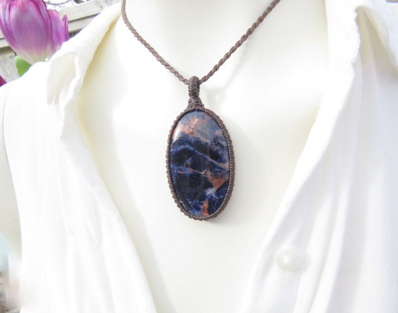 ✨COMMUNICATION, PEACE & SPIRITUAL GROWTH✨Large and lovely Sodalite macrame necklace - Deep denim blue and grey - classic oval shape . You will receive the exact stone in photos #1-7 and the video.