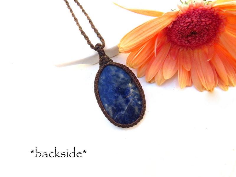retty Sodalite Macrame Necklace - Deep denim blue and gray - classic oval shape - earthy chic ! You will receive the exact stone in photos #2-7 and the video.