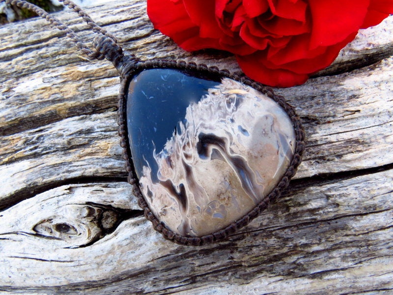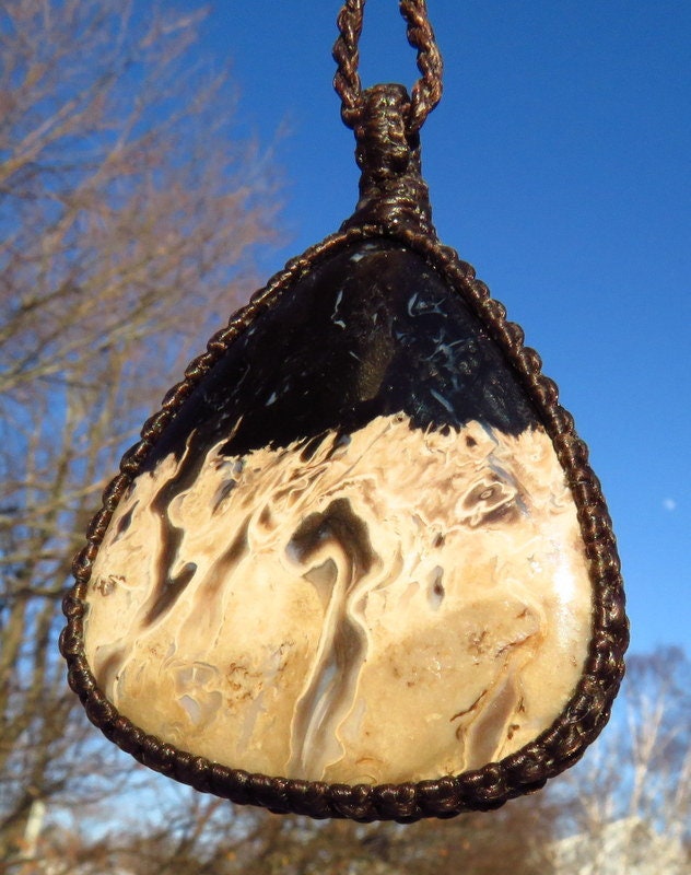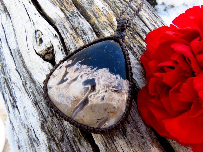 GORGEOUS Petrified PalmWood gemstone necklace - this Petrified palmwood is from Indonesia - Jet black and beige with intriguing Petrified Palmwood patterns !