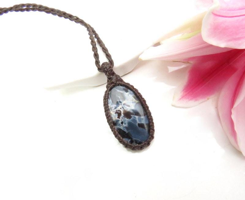 Materials: cabochon, pietersite, waxed cord.