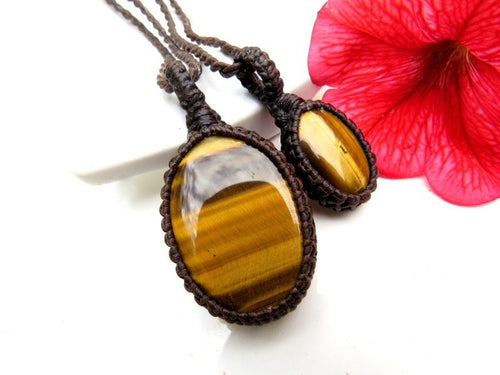 Very nice Tiger Eye macramé necklace pair ! - Gorgeous, chatoyant golden tigers eye - Deep, rich and earthy with a smooth and shiny polish. These dainty pairs can be worn stacked / layered together or worn separately - a lovely idea for best friends and soul-mates - also a great size for kids! *You will receive BOTH (2) pieces with the cord length of your choosing for each (if you wish for different lengths, please indicate in the 'notes to seller' box in your cart or send us a message!