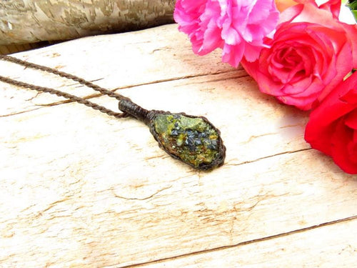 & exotic - Green Andradite Garnet crystal necklace - A spectacular matrix covered with twinkling green Garnet crystals 💚 **prettier in person - the twinkle is beautiful ! A fabulous piece for the crystal collector ! This Garnet is from Afghanistan **You will receive the exact crystal in photos #1-7 and the video.