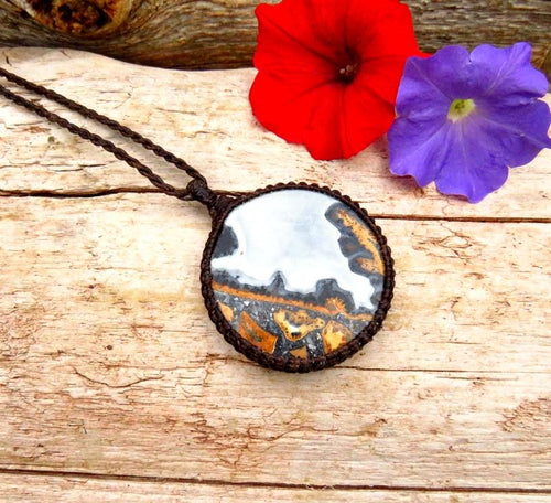 ✨GROUNDING & PROTECTIVE ✨Incredible Maligano Jasper macrame necklace ! Maligano Jasper from Sulawesi Island, Indonesia. Contains magnificent patterns and earthy colors! We have a very limited collection ! 💎