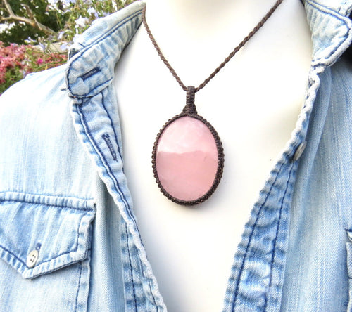 💗SELF-LOVE & COMPASSION 💗 Beautiful and large Rose Quartz Macrame Necklace -This is a beautiful, translucent rosy pink Rose Quartz crystal. An important stone for helping us to raise our vibrations of love and compassion - for ourselves and others ~ : ) *You will receive the exact crystal in photos #1-6