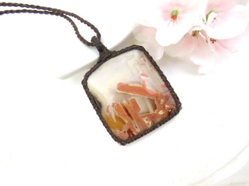 Fantastic and RARE Turkish Stick Agate macrame necklace - An absolute wonder! Fascinating peachy pink tubes suspended in translucent Agate ! A treasure !💎