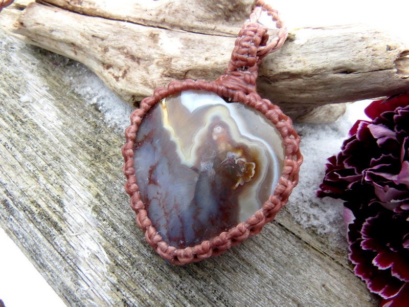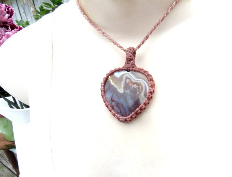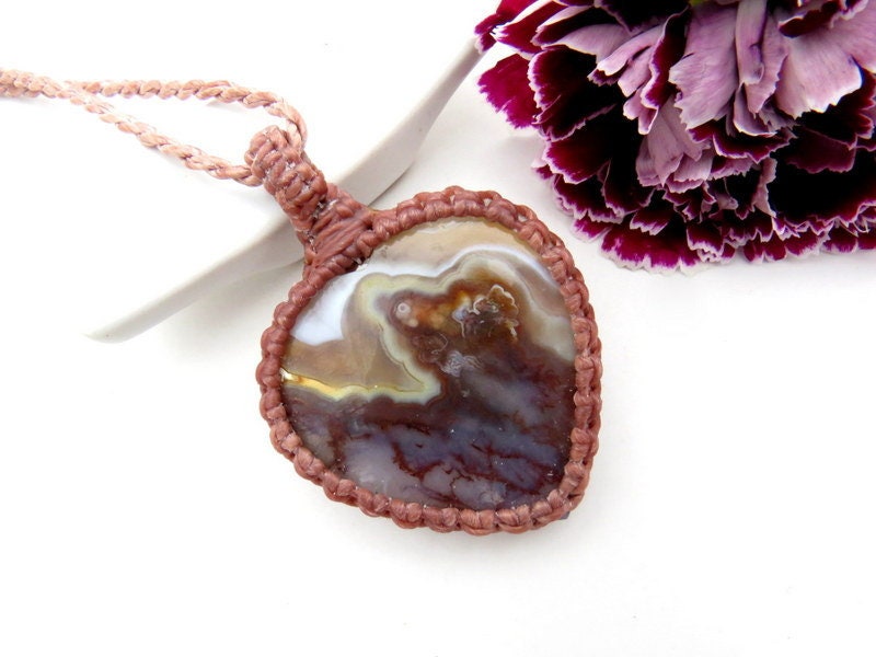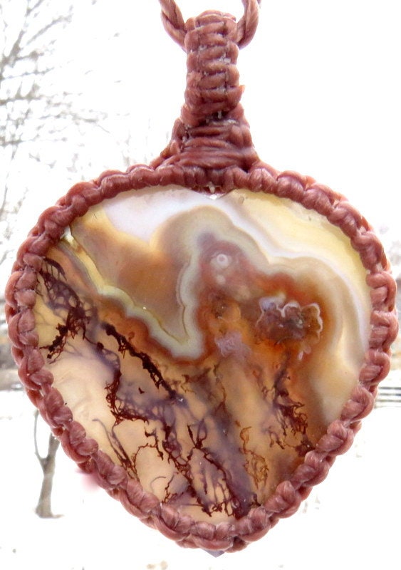 Spectacular heart - shaped Plume Agate macrame necklace- Plume Agate with gorgeous plumes - so much prettier in person ! One of a kind ✨* Minor natural imperfections