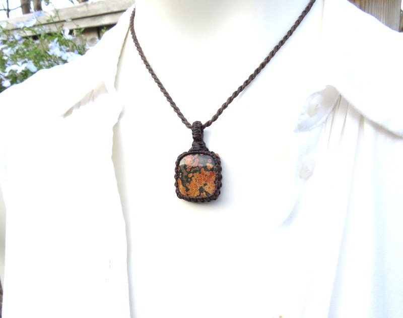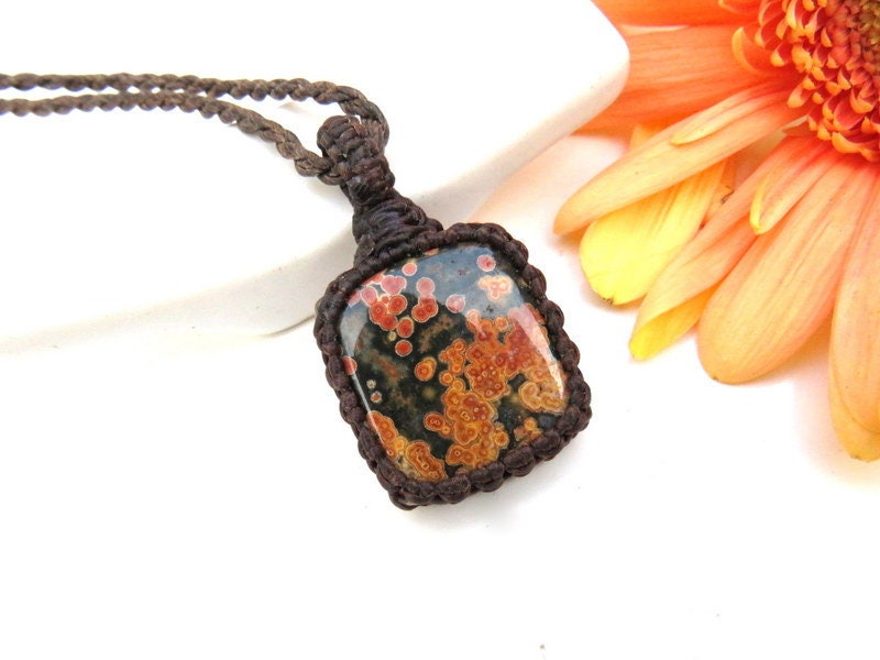 == Ocean Jasper pendant is 4.9 cm long (excluding the loop) and 3.3 cm wide