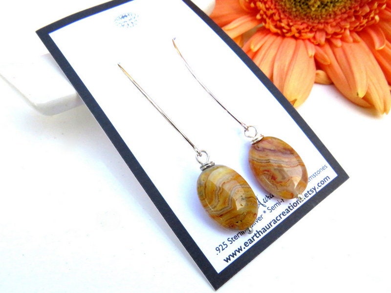 Unique Ocean Jasper necklace and Crazy Lace sterling silver earrings set ! Here we have a sweet Ocean Jasper macrame necklace - orange and green and dotted with wonderful orbs. The Crazy Lace Agate earrings are made of sterling silver and yellow and orange Crazy lace Agate with pretty banding. We love this jewelry set ! The perfect anniversary gift or for Valentines Day !