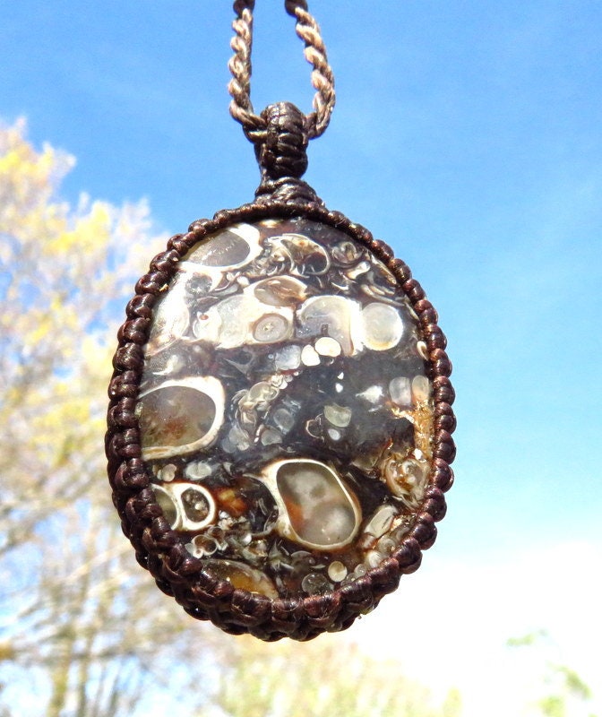 Materials: agate, waxed cord, fossil, torritella fossil, turtle agate, semiprecious stones.
