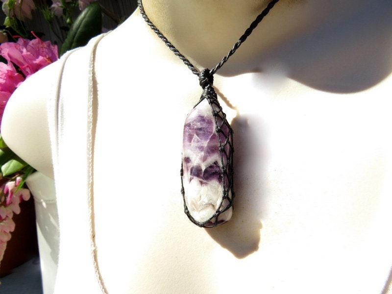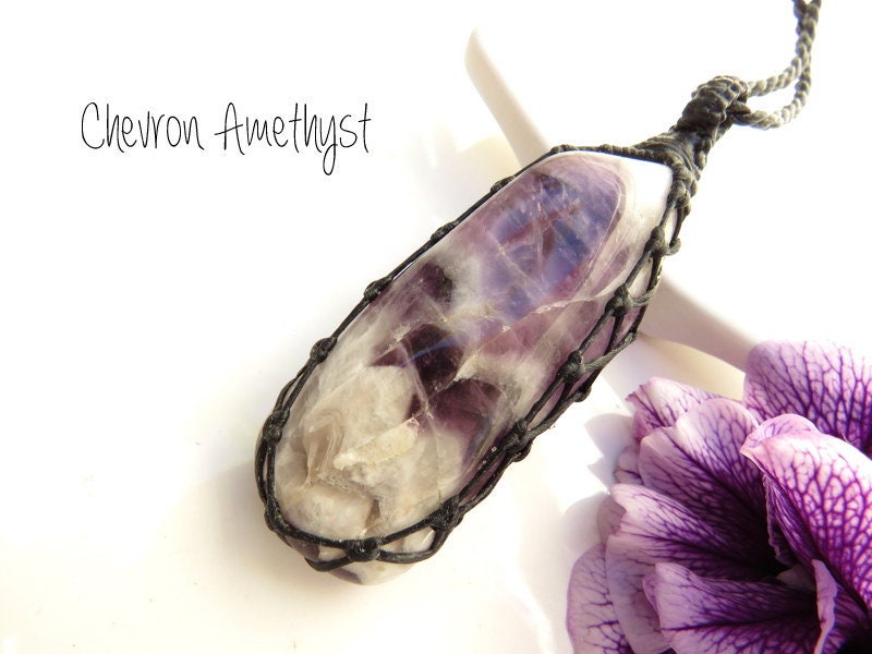 🌹Beautiful Chevron Amethyst crystal necklace - Chevron amethyst is banded amethyst - a combination of soft and dark purple Amethyst and white Quartz (also called 'Dream Amethyst') Chevron is an wonderful meditation stone and is said to be especially useful for the Third Eye. 💜