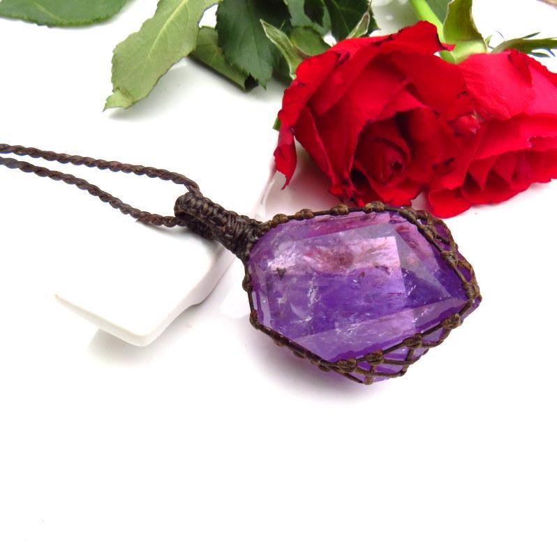 ๐Luscious Freeform Amethyst crystal necklace - A magical deep purple Amethyst crystal FULL of rainbow prisms ๐๐- a beautiful find !