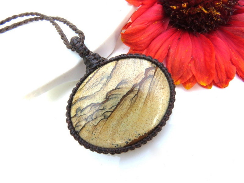 Earthy Scenic Jasper Necklace - stunning patterns that are reminiscent of a beautiful landscape - the patterns are amazingly clear and crisp - classic oval shape *You will receive the exact piece in photos #1-6 and the video.