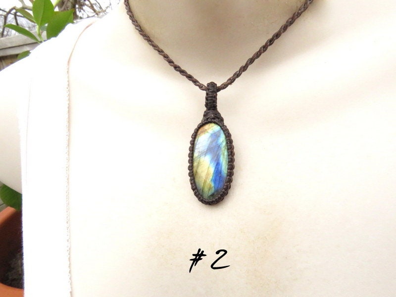 This listing for for ONE GORGEOUS LABRADORITE macrame necklace - Quality Labradorite gemstone necklace - beautiful blue and green fire ( depending on the stone) dainty sizes - Simply Divine ! The size and price of each piece is indicated in the drop down menu according to the number on the Labradorite. (#1-4) You get to choose your favourite(s) 😍💙