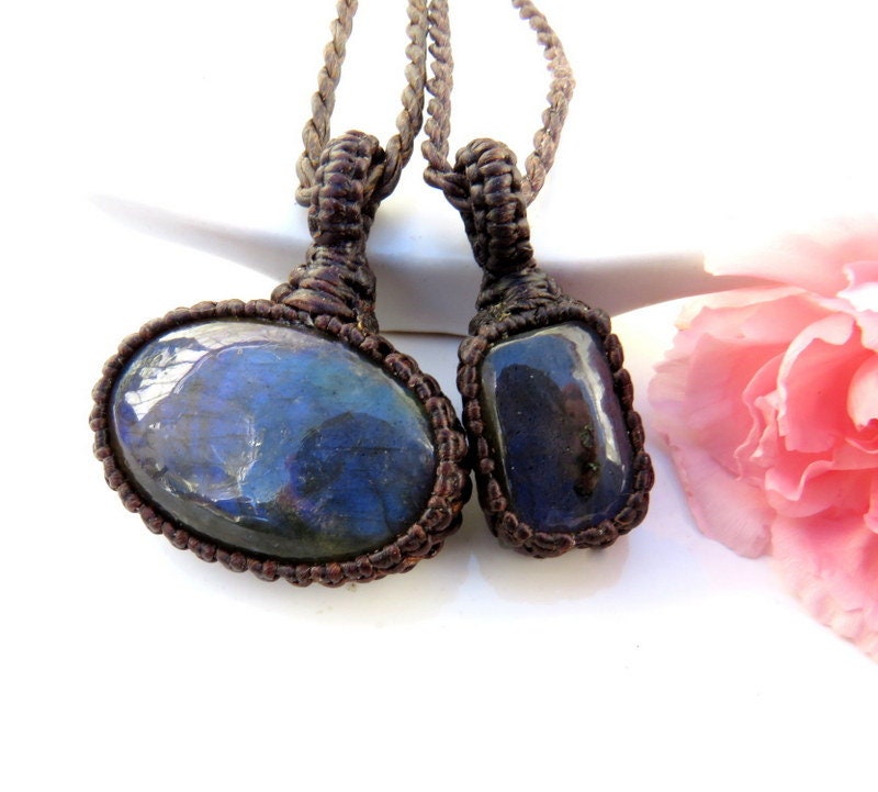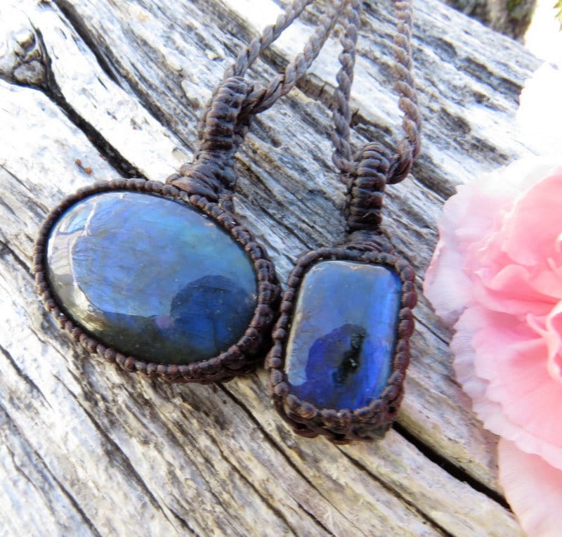 Materials: gemstones, labradorite, waxed cord, stones, semiprecious stones.