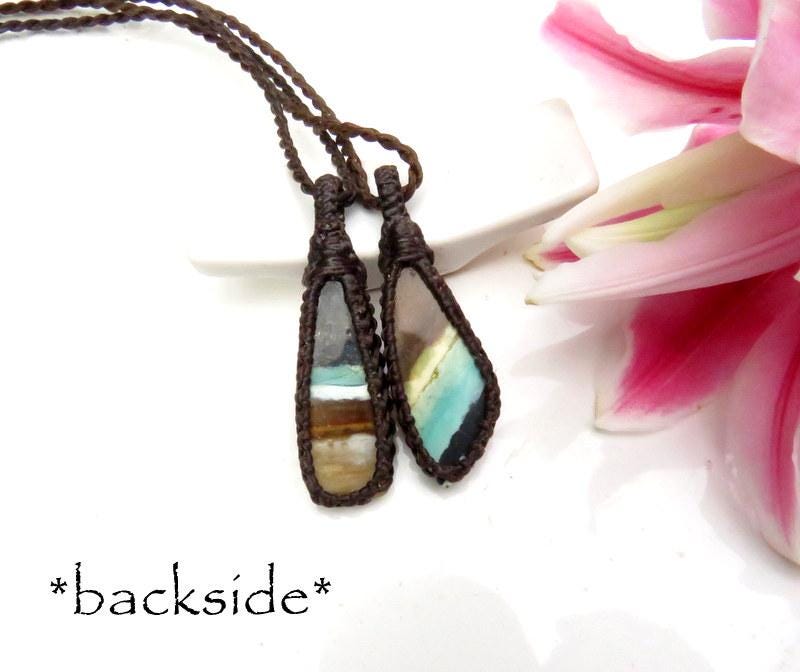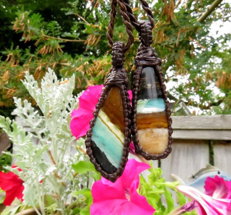 == We wrap or 'set' our semiprecious stones using the art of knot-tying or ' macrame '