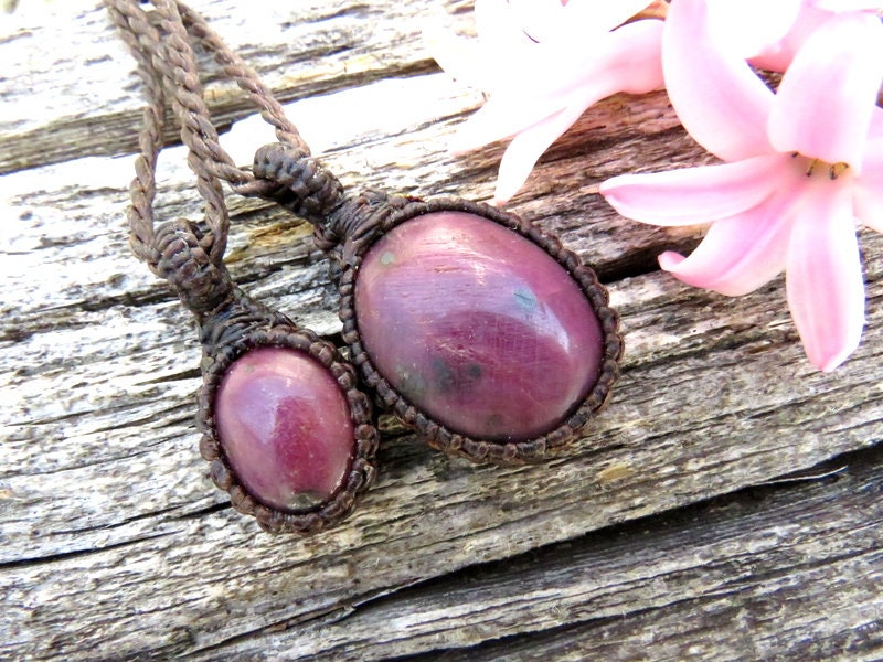 Lovely Ruby macramé necklace set - Gorgeous, deep fuchsia color ! This listing is for TWO macrame necklaces! Can be worn separately or layered together. **We are showing the set with the 18 inch and 22 inch cord lengths for the layered look!
