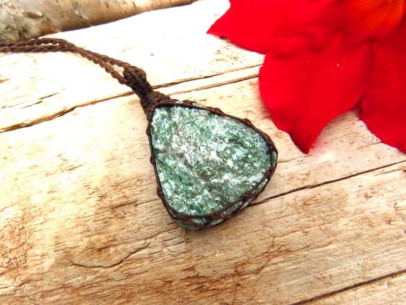 * Fuchsite Mica pendant is 4.2 cm long (excluding the loop) and 3.8 cm wide
