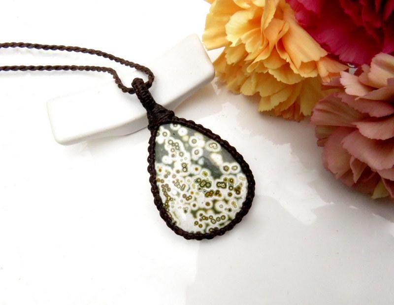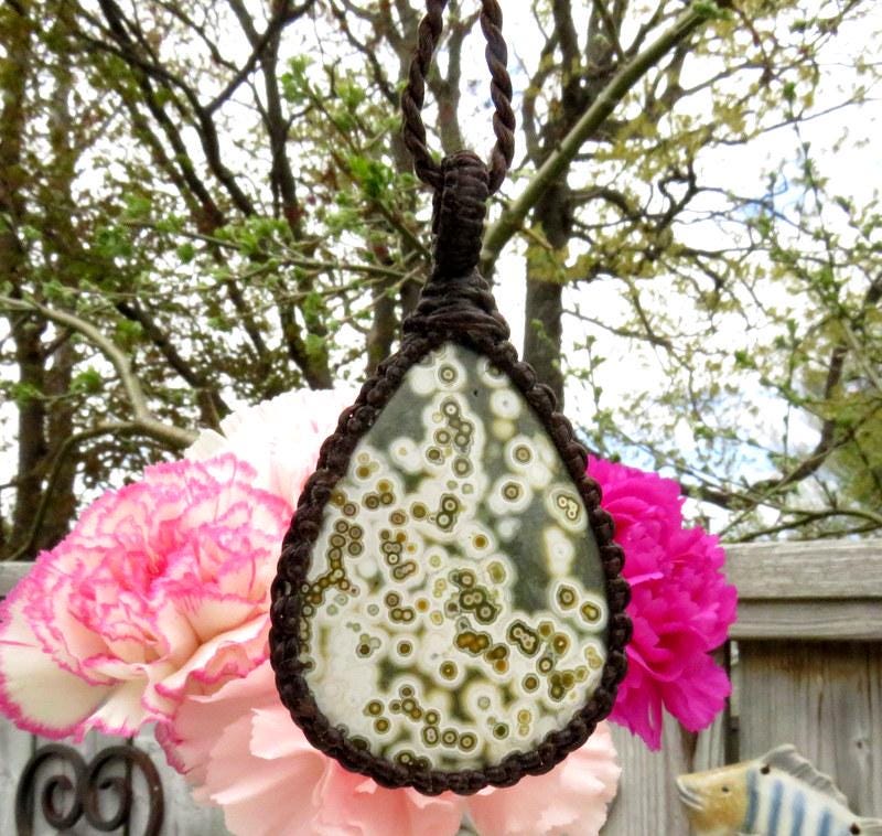 Pretty Ocean Jasper Macramé Necklace - The colors and patterns of this stone are simply wonderful - sea green and covered with sweet, bubbly 'orbs! Perfection ✨