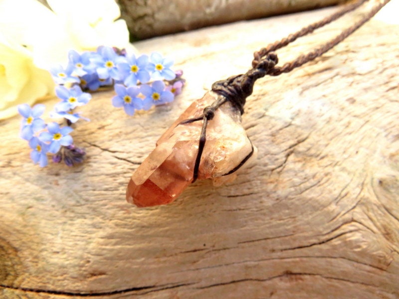 A stunning Ishuko Red Phantom Quartz crystal macrame necklace ✨😍 "Ishuko' means 'Fire Place' - referring to the red color of this stunning quartz. "Ishuko' also means lucky 😊 The red color of the phantoms of beautiful Quartz is from Hematite deposits. A rare find!