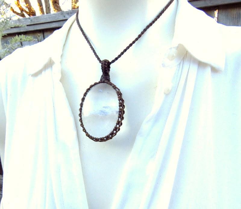 == The macramé design covers the perimeter of the stone - we do not cover the back so the stone can touch or sit close to the skin
