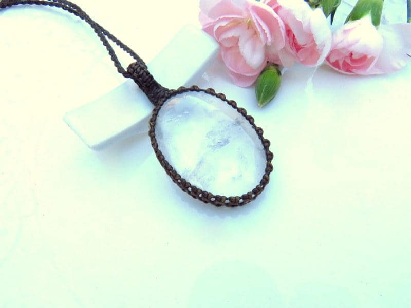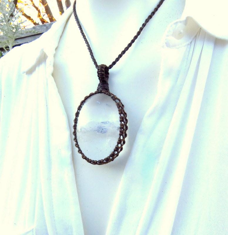 Quartz crystal macrame necklace, jewelry gift ideas for the boho beauty