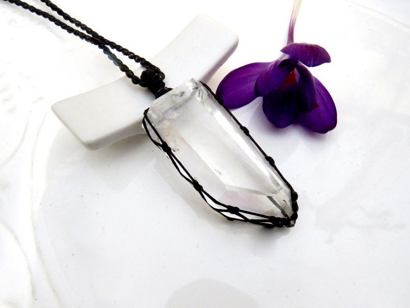 Beautiful Brazilian Quartz crystal macrame necklace - PURE energy in an elegant and earthy design - - - You will receive the exact crystal in photos #1-6