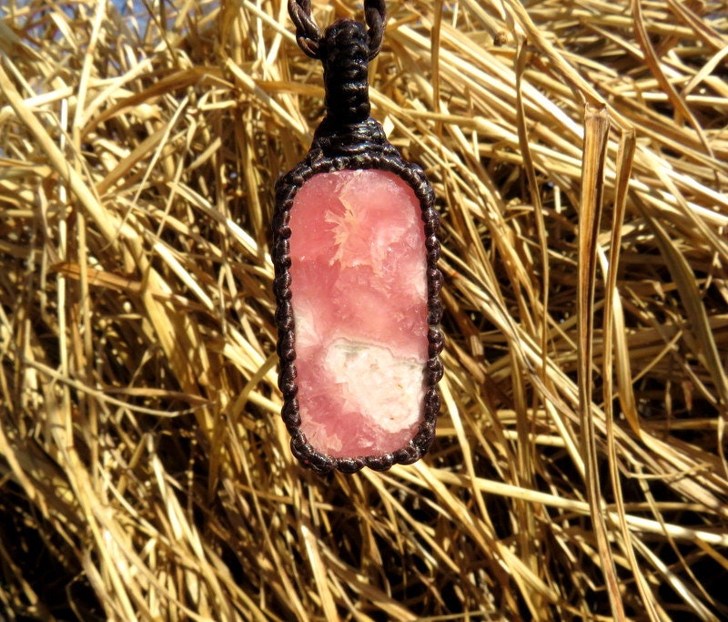 Very sweet Rhodocrosite macrame necklace - gorgeous pink with lovely patterns - reminiscent of a roses or pink peonies💗 - Rhodocrosite evokes feelings of love, calm, sweetness - so lovely ! Sourced in Argentina.