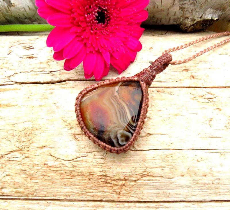 Gorgeous Sardonyx Macrame Necklace - Very unique piece distinctive banding in classic black and brown with mesmerizing patterns. You will receive the exact piece in photos #1-6 and the video.