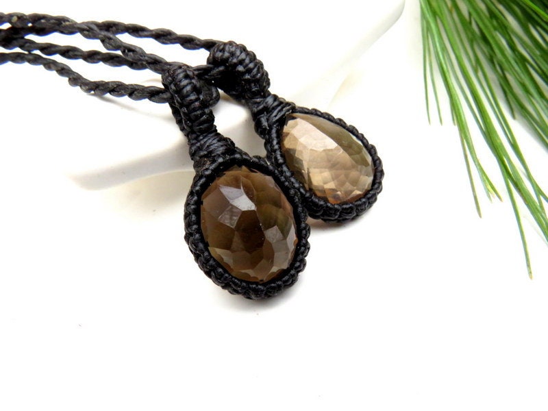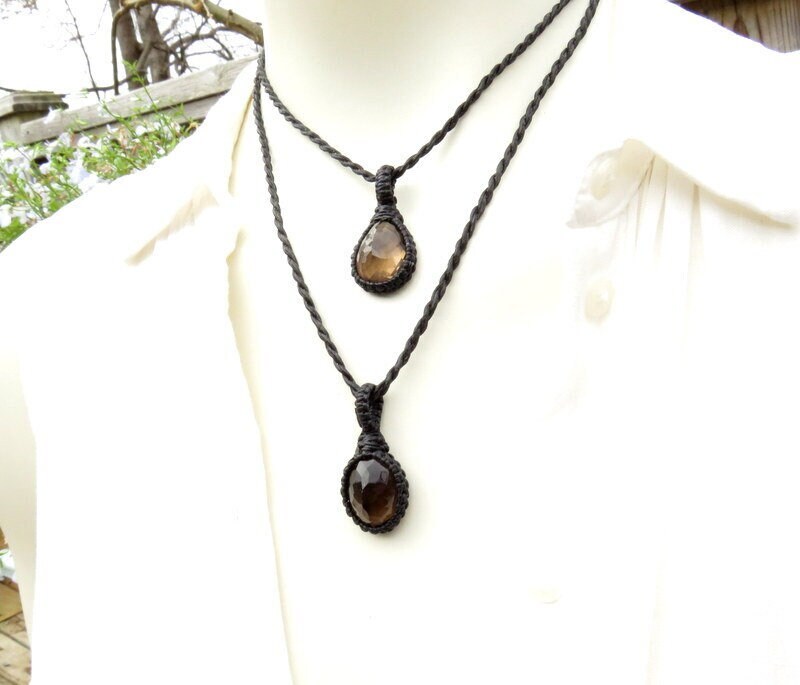 Lovely Smokey Quartz Necklace set - The facet cut gives these smoky quartz crystals a brilliant twinkle and a mystical feel - translucent smoky, deep brown in color- classic oval shape - chic and earthy ! You will recieve BOTH necklaces with this listing ! A great gift for soulmates, best friends or worn together as a layered necklace !