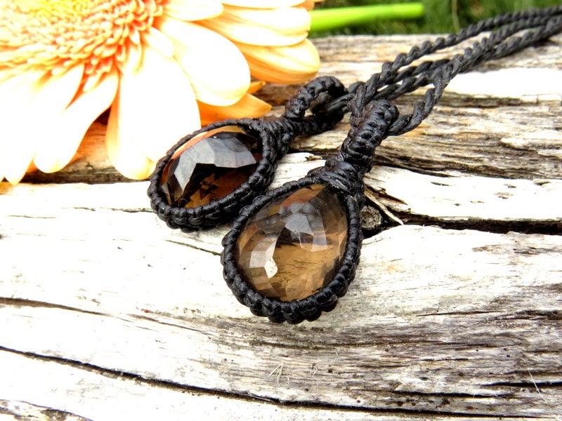 Materials: smokey quartz, quartz, semiprecious stones, waxed cord, smoky quartz.