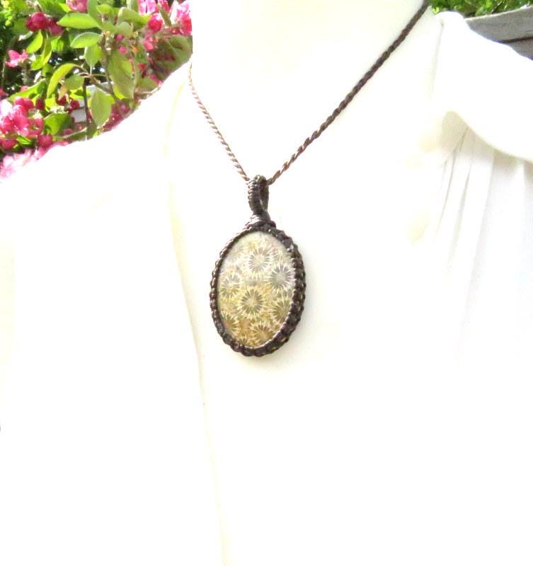 Materials: agate, fossil, waxed cord, fossil coral, agatized coral.