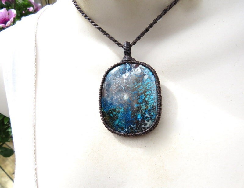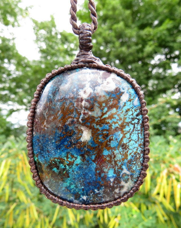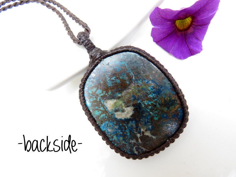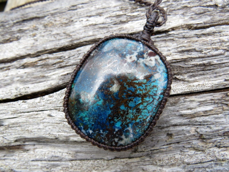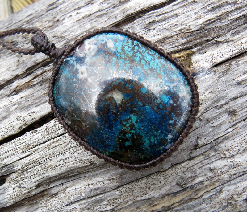 Materials: gemstone, waxed cord, healing stones, azurite, stone, cabochon.