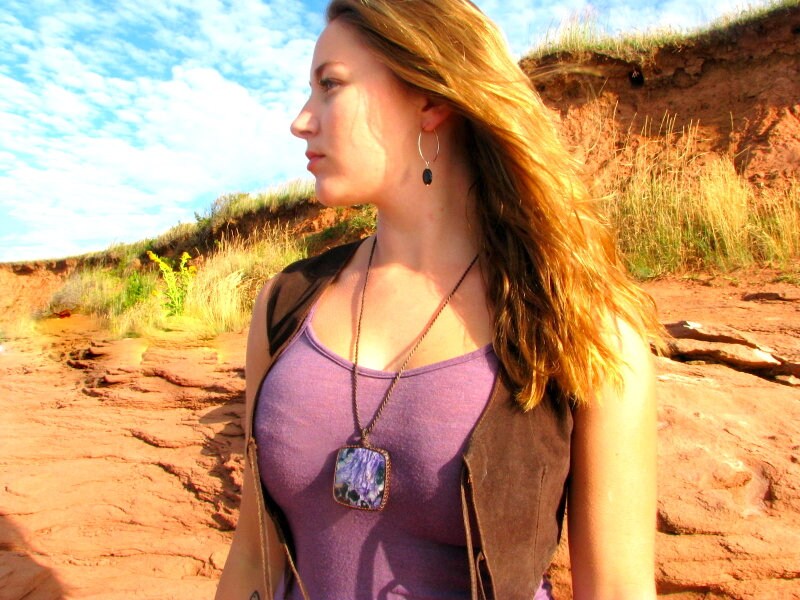 Lovely Charoite macrame necklace - Beautiful, deep, swirling light purple Charoite - so exquisite. Found in the Charo River area of Siberia. *You will receive the exact piece in photos #1-5.