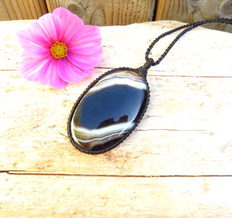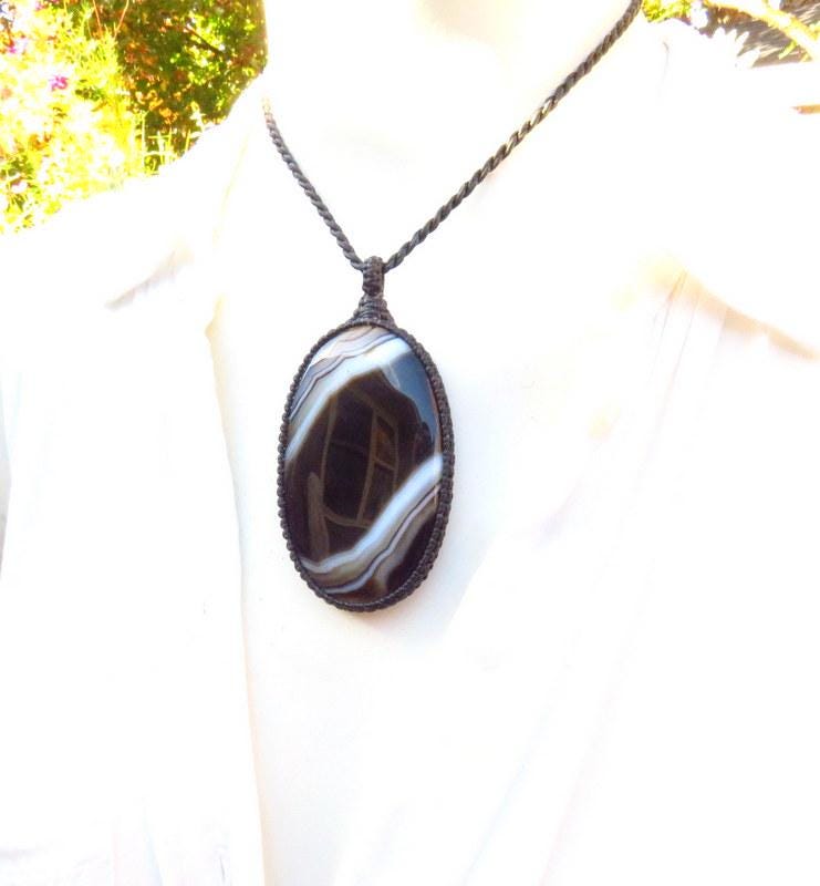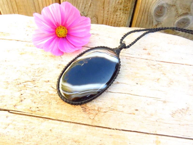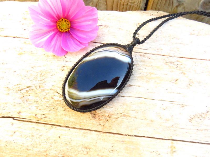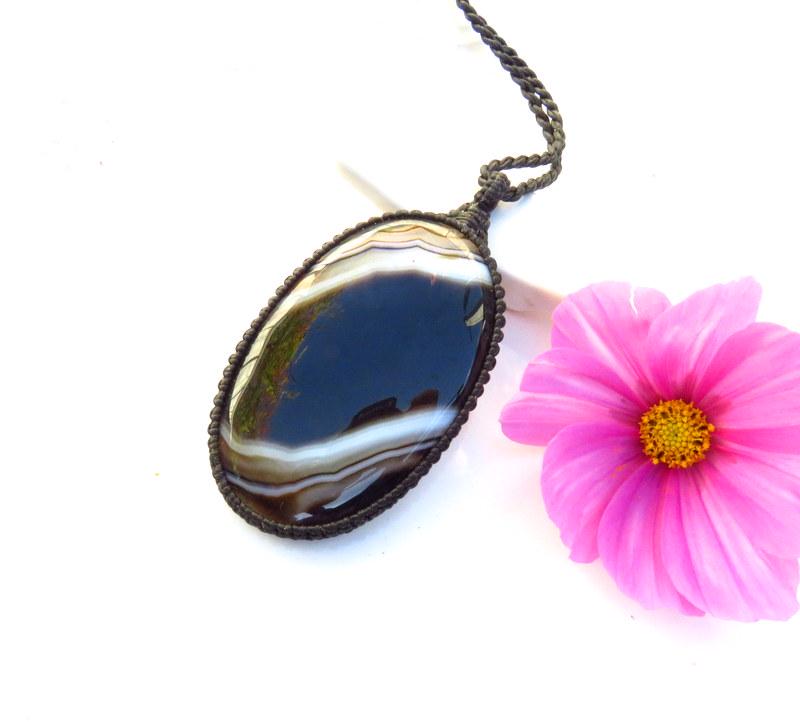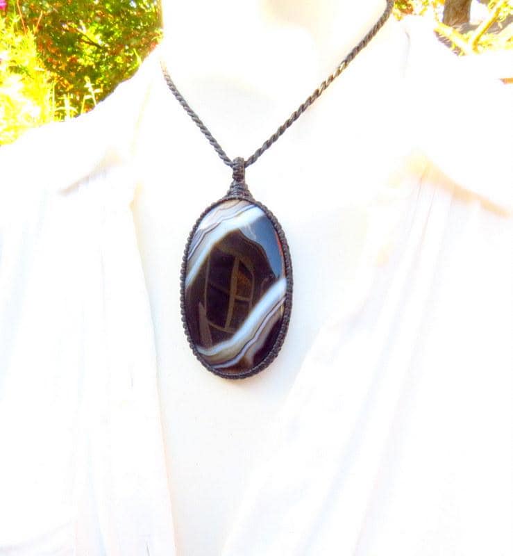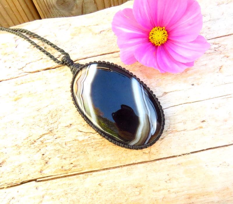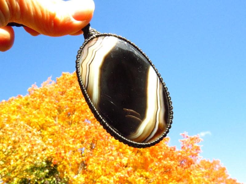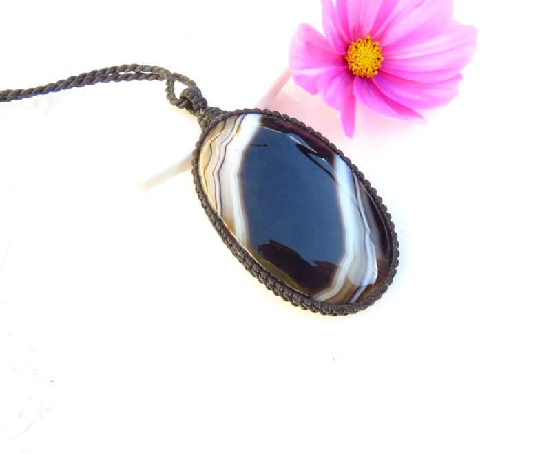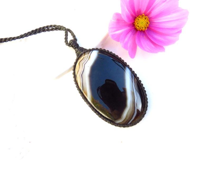 Exceptional Sardonyx gemstone necklace - a beautiful Sardonyx gemstone with mesmerizing banding in classic black, gray and brown ! You will receive the exact stone in photos #2-12 and the video. Sardonyx is a best seller in our shop 🖤✨🖤