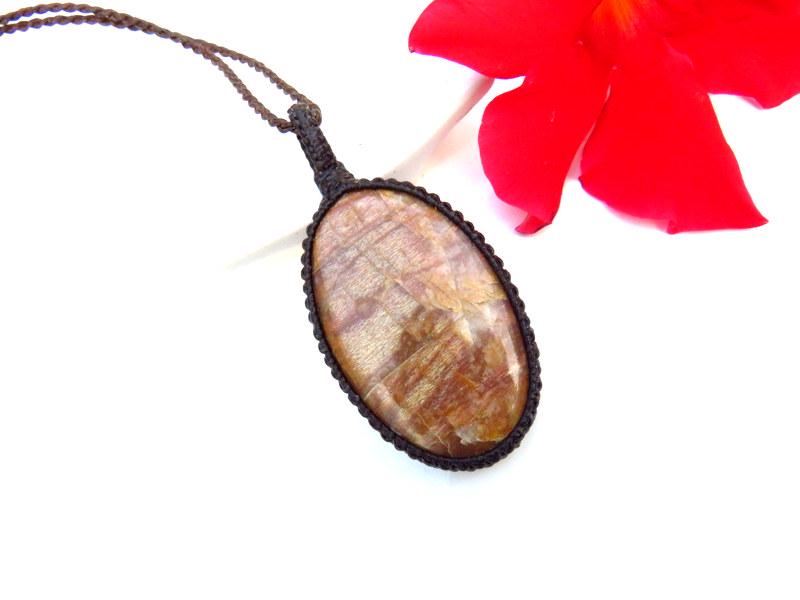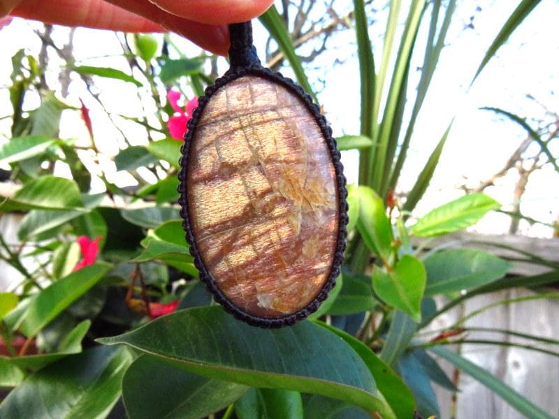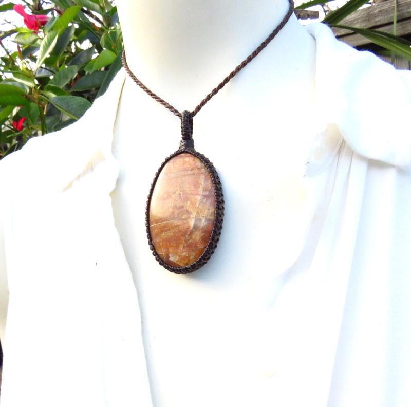 quality - Sun-shiny Sunstone macrame necklace - Lovely, tropical peachy-orange with the most beautiful iridescent flash! Classic oval shape - Summery sun-shiny energy !🧡