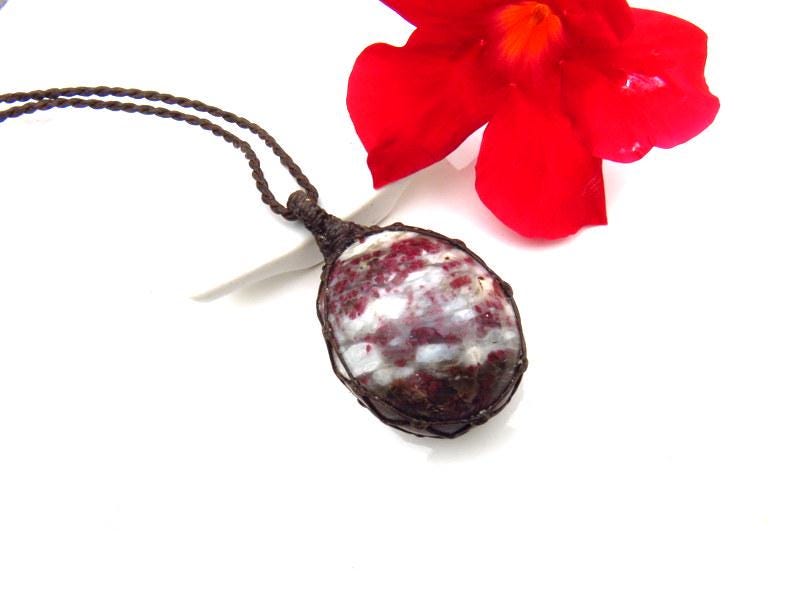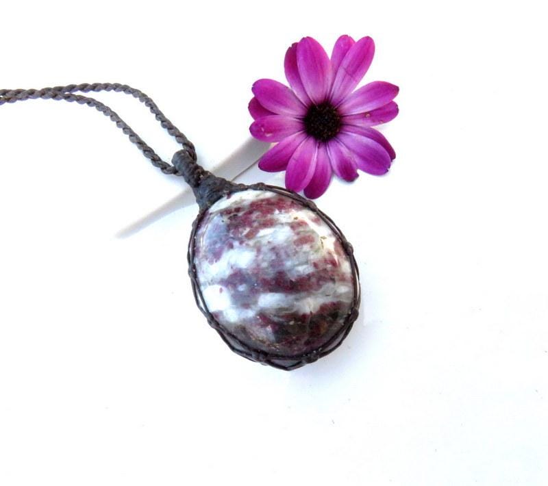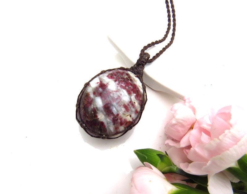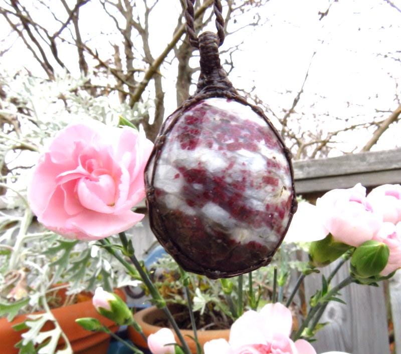 💖HEART OPENING & ACCEPTANCE OF UNIVERSAL, UNCONDITIONAL LOVE 💖 Gorgeous Rubellite macramé necklace - pretty magenta Rubellite crystals in matrix - it is reversible! A crystal that is beneficial for the Heart Chakra 💖