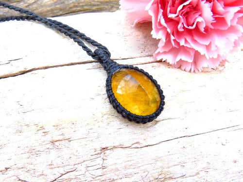 Breathtaking Yellow Fluorite crystal macrame necklace - a gorgeous golden yellow Fluorite crystal - a warm and cheery yellow and a beautiful, twinkling facet cut 💛💛