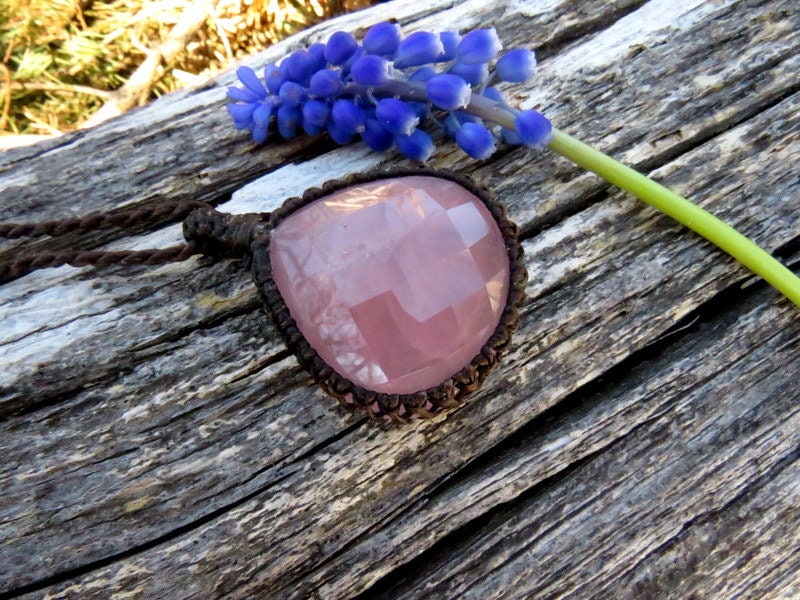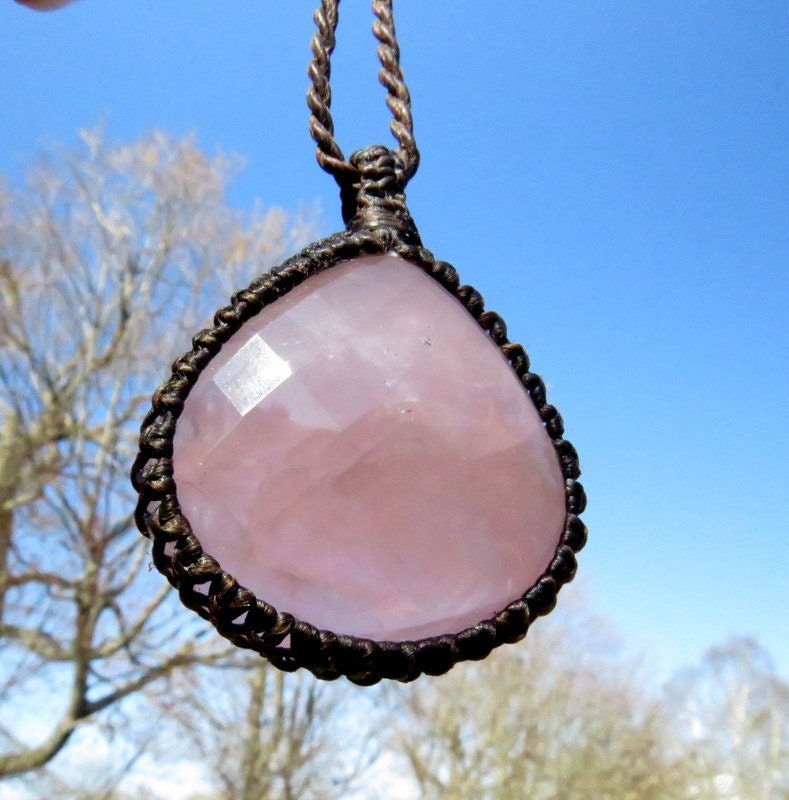 Superb Quality facetedd Rose Quartz macrame necklace - This lovely Rose Quartz crystal is a translucent pink - with a goregous facet cut that gives this gemstone a beautiful twinkle and flash! Gorgeous energy 🌺 An important stone for helping us to raise our vibrations of love and compassion - for ourselves and others ~ : ) You will receive the exact stone in photos #2-7 and the video.