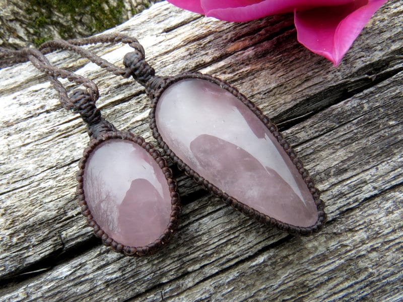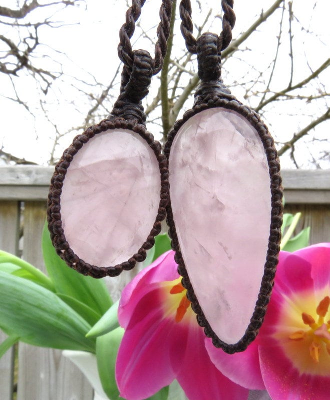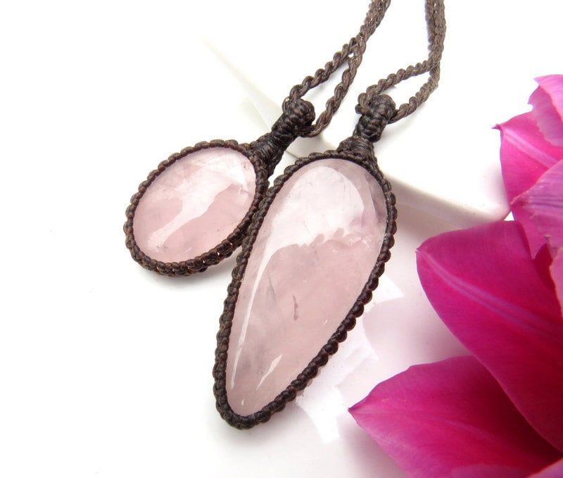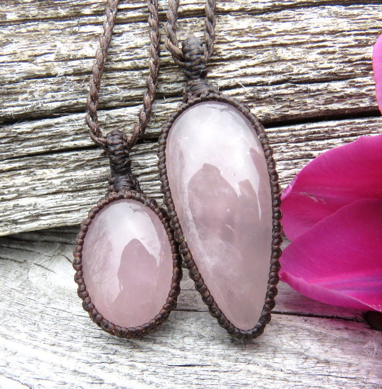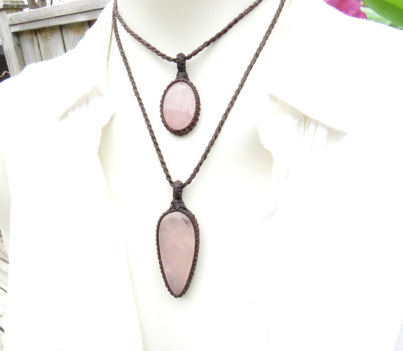 💕SELF-LOVE, COMPASSION & POSITIVE ENERGY 💕This listing is for TWO lovely pink Rose Quartz macrame necklaces - These pairs can be worn layered/stacked together or worn separately - a lovely idea for best friends and soul-mates - and also a great size for kids! PLEASE NOTE **You will receive BOTH (2) crystal necklaces with the cord lengths of your choosing -if you wish to wear the set like the layered look that you see in the listing photos, please indicate in 'notes to seller' box at checkout which cord lengths that you wish to have. For the layered/stacked look, you will need to have 2 different cord lengths. For example, in the photos, we are showing the set with our 18 (16) inch cord and 22 (20) cord.
