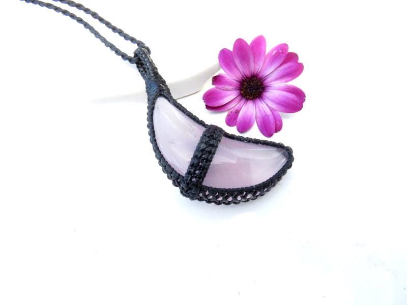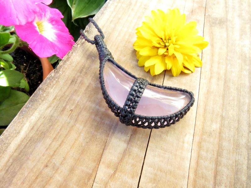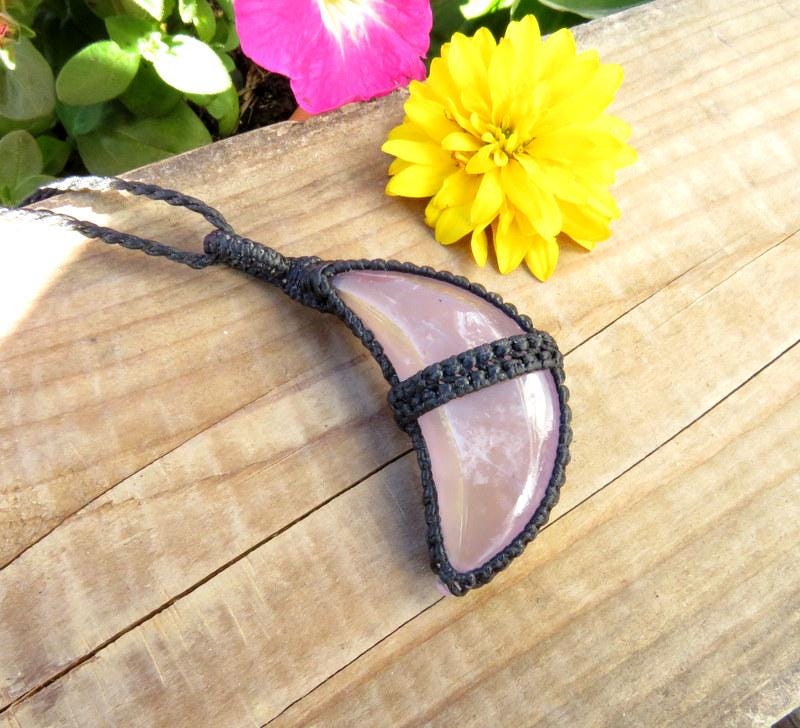 The PERFECT Rose Quartz macrame necklace - Beautiful pink color and carved into a lovely moon shape.🌙 A generous size 🌺 An important stone for helping us to raise our vibrations of love and compassion - for ourselves and others ~ : ) You will receive the exact stone in photos #1-7 and the video.