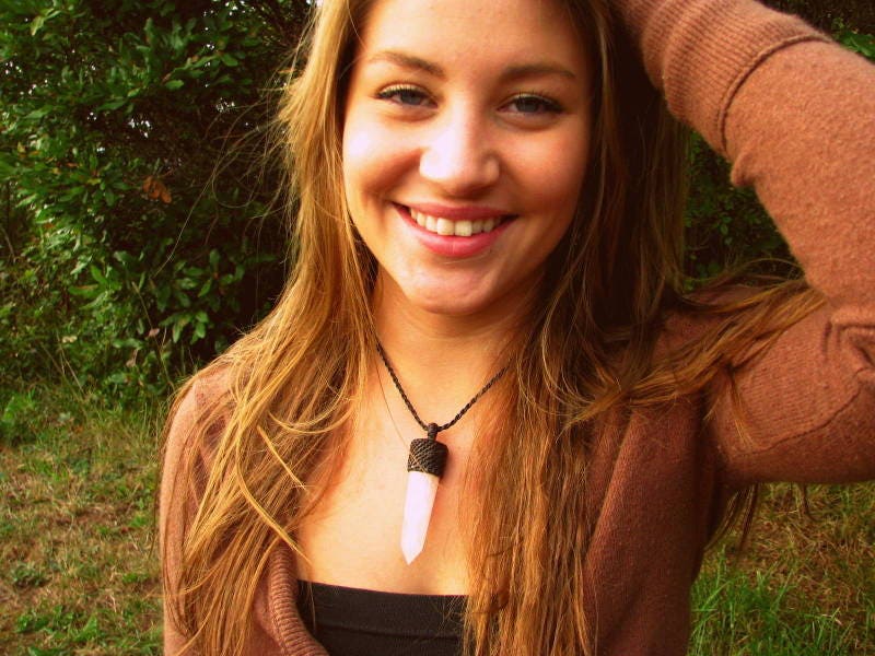 Materials: quartz, rose quartz, crystal, waxed cord.