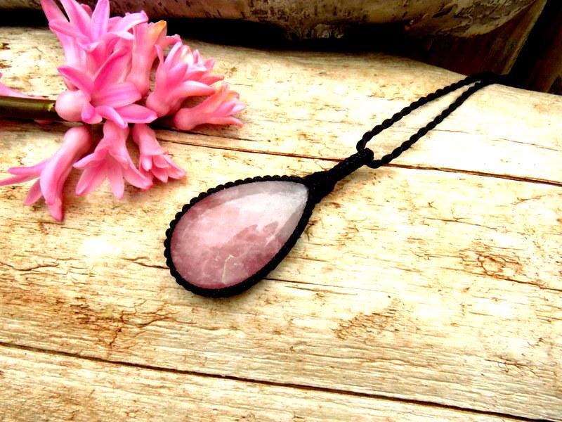 Superb Quality Rose Quartz macrame necklace - This lovely Rose Quartz crystal is a soft, translucent pink - with a shiny and smooth polish . Gorgeous energy 🌺 An important stone for helping us to raise our vibrations of love and compassion - for ourselves and others ~ : ) You will receive the exact stone in photos #2-8 and the video(*coming soon)